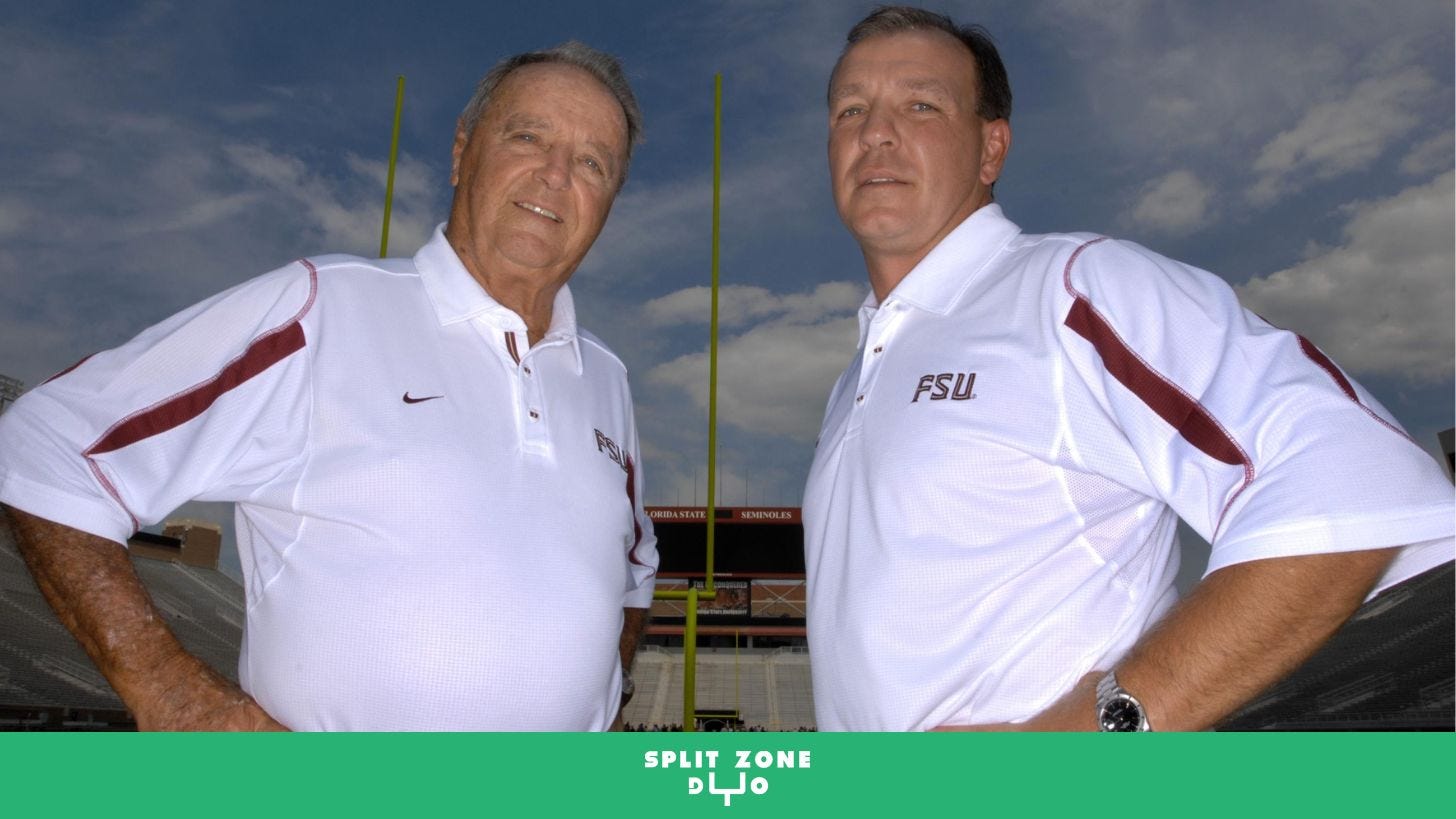 * A messy “coach-in-waiting” situation in Tallahassee, as Bobby Bowden is finally pushed away and Jimbo Fisher steps up