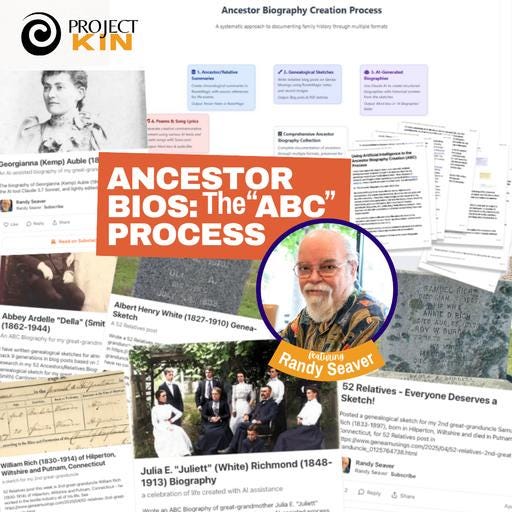 Part of what makes Randy’s work so compelling is the openness of it to welcome the work of so many others. This is so important right now as we’re all learning how to make the best use of these, too. Randy cited many others we might know from RootsTech, Facebook, YouTube, or right here on Substack like Denyse Allen, Carole McCulloch, and Thomas McEntee.