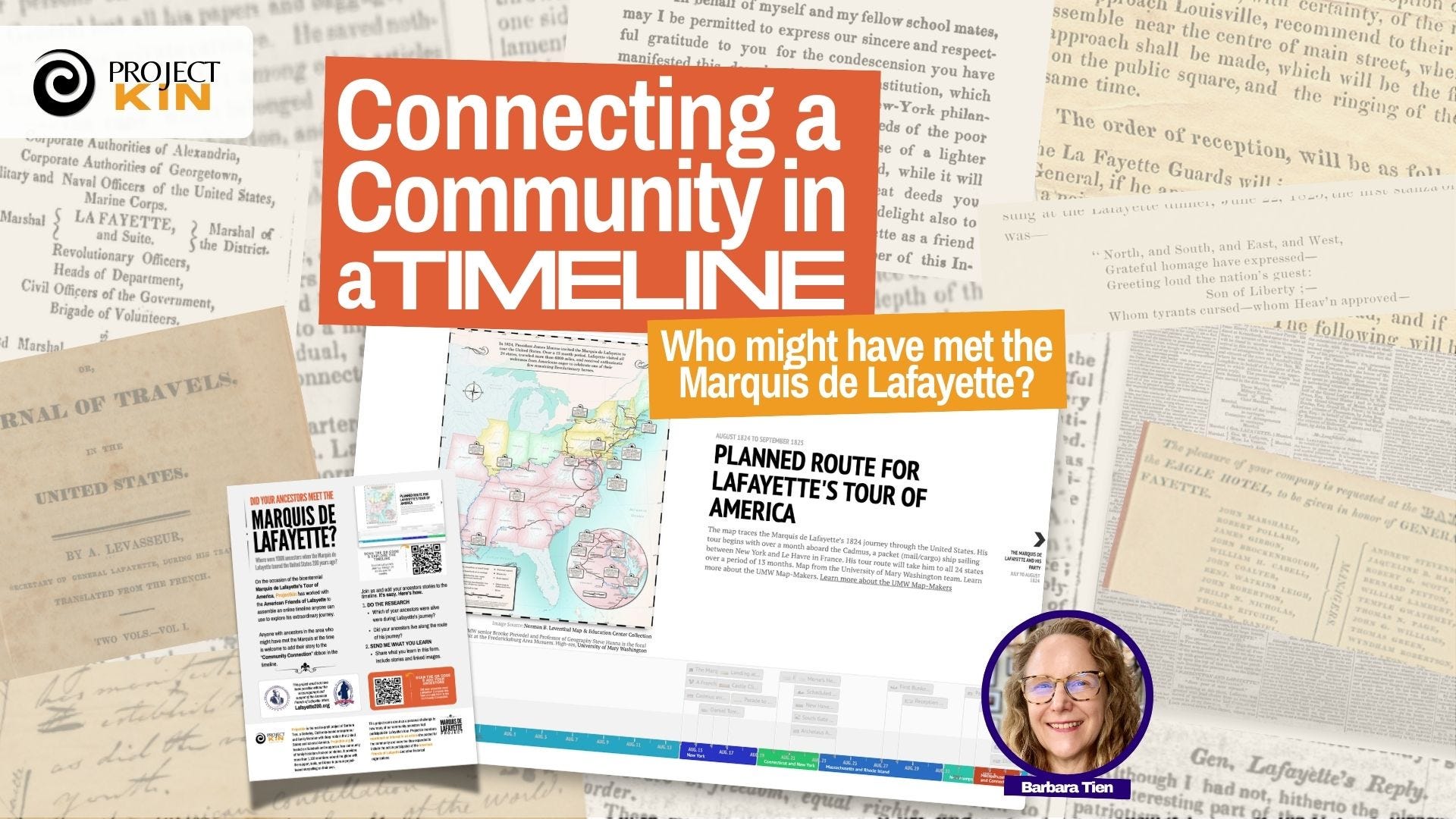 This national story inspired me to build an interactive timeline of Lafayette’s “Farewell Tour.” I wanted such a timeline to help me answer whether my ancestors might have met the Marquis de Lafayette.