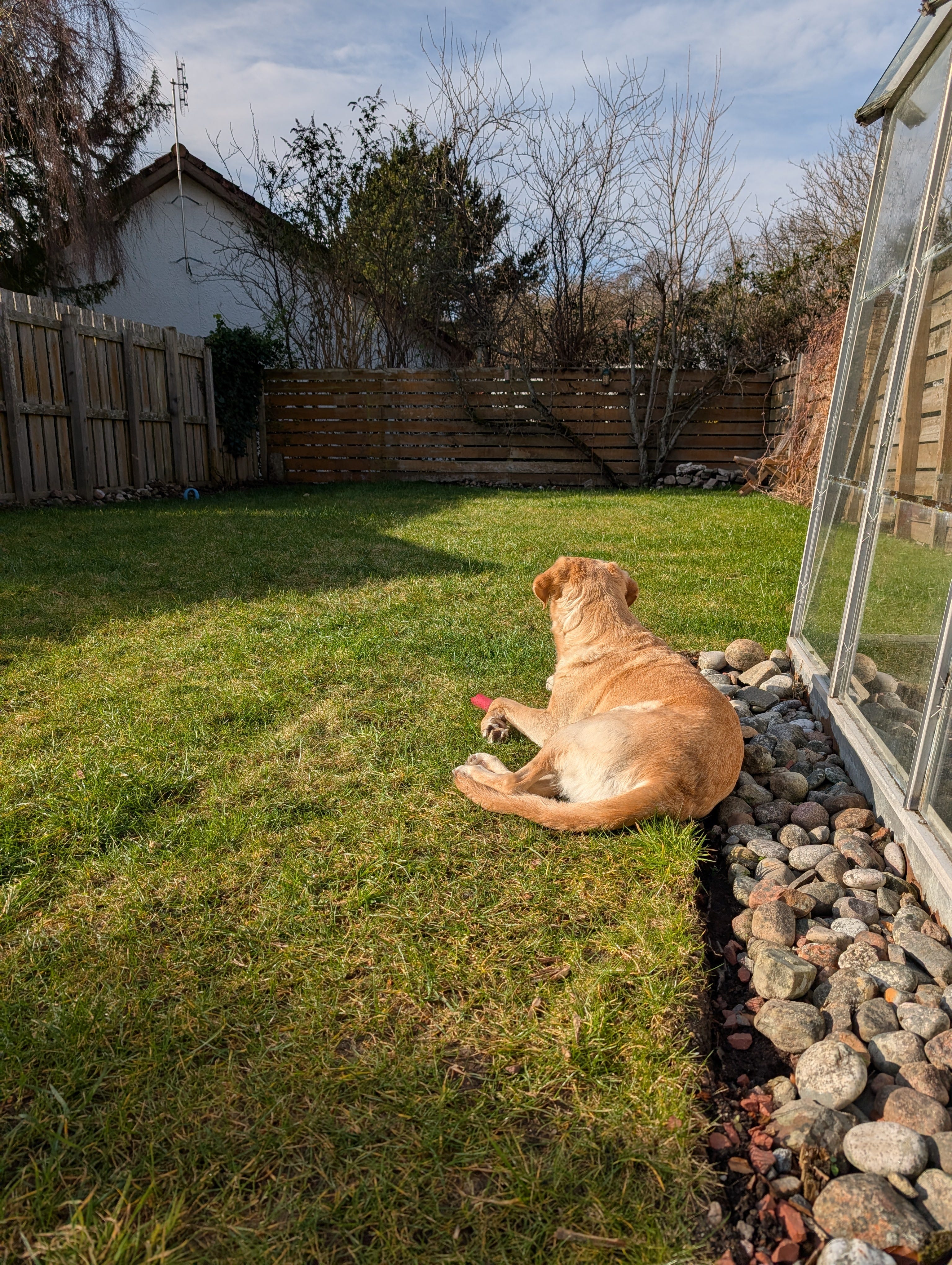 The bulbs I planted back in November are flowering and I love seeing them from the windows of the house, even on cold wet days like today. I wanted to spend the day in the garden but it’s been raining sideways intermittently and it’s freezing cold. So instead I made myself a cuppa and settled in for some sewing. The slow cooker is on and gradually filling the house with warming, homely scents of dinner. The radiators are quietly clicking away, and the dogs are snoozing on the sofa after a short, chilly walk in the rain. I rather optimistically hung the laundry out on the line (I’m still so delighted to have a garden to dry washing) and it’s currently hanging damp and bedraggled, waiting for a break in the rain for me to retrieve it for the warmth of the Dry:Soon. But for now, I’m not leaving my cosy nook.
