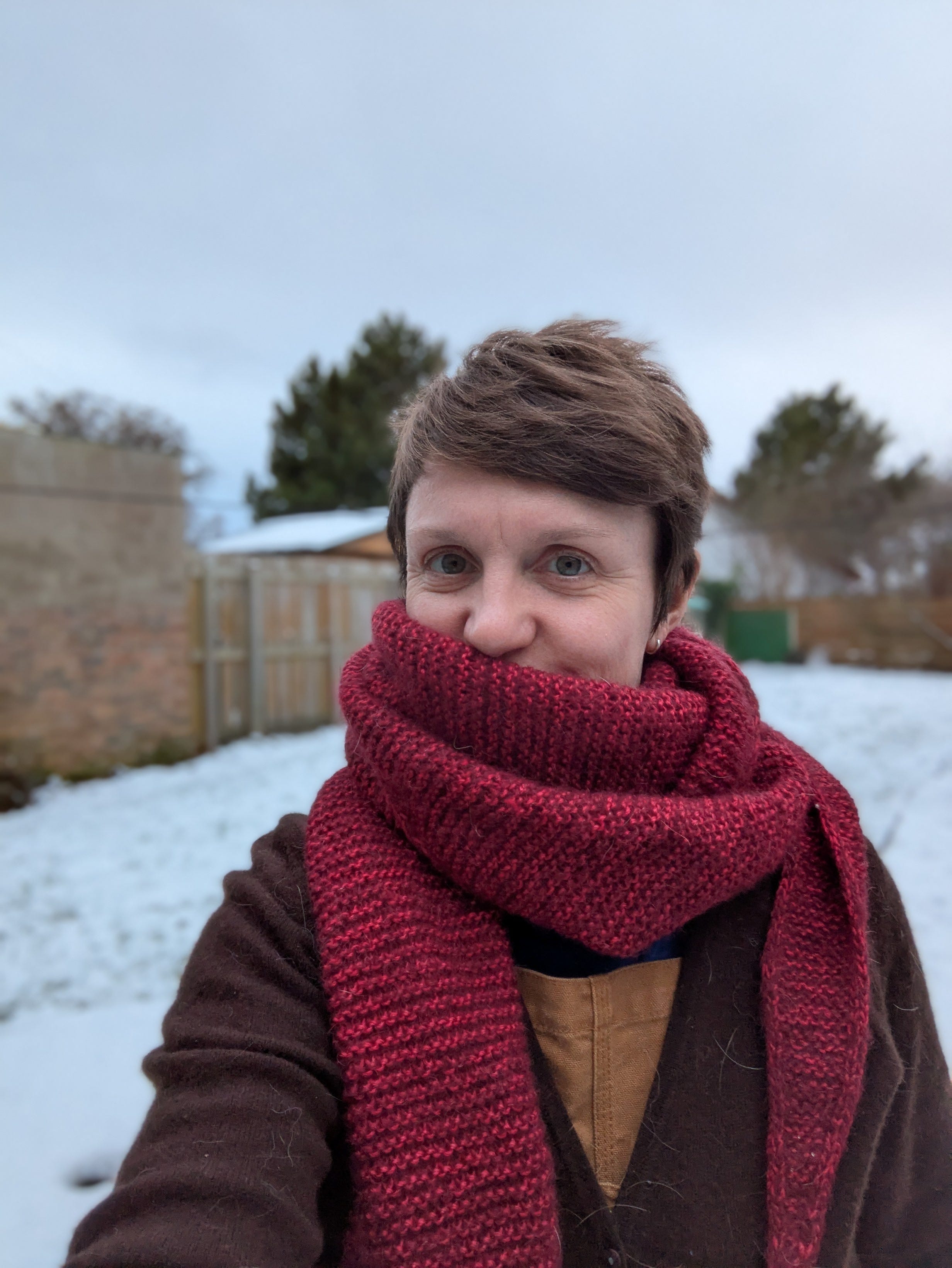 The Sophie Shawl above, is one of my lingering 2024 projects I want to finish. Wearing it for this picture definitely motivated me to get it done, it’s so soft and warm, and I love the colour.