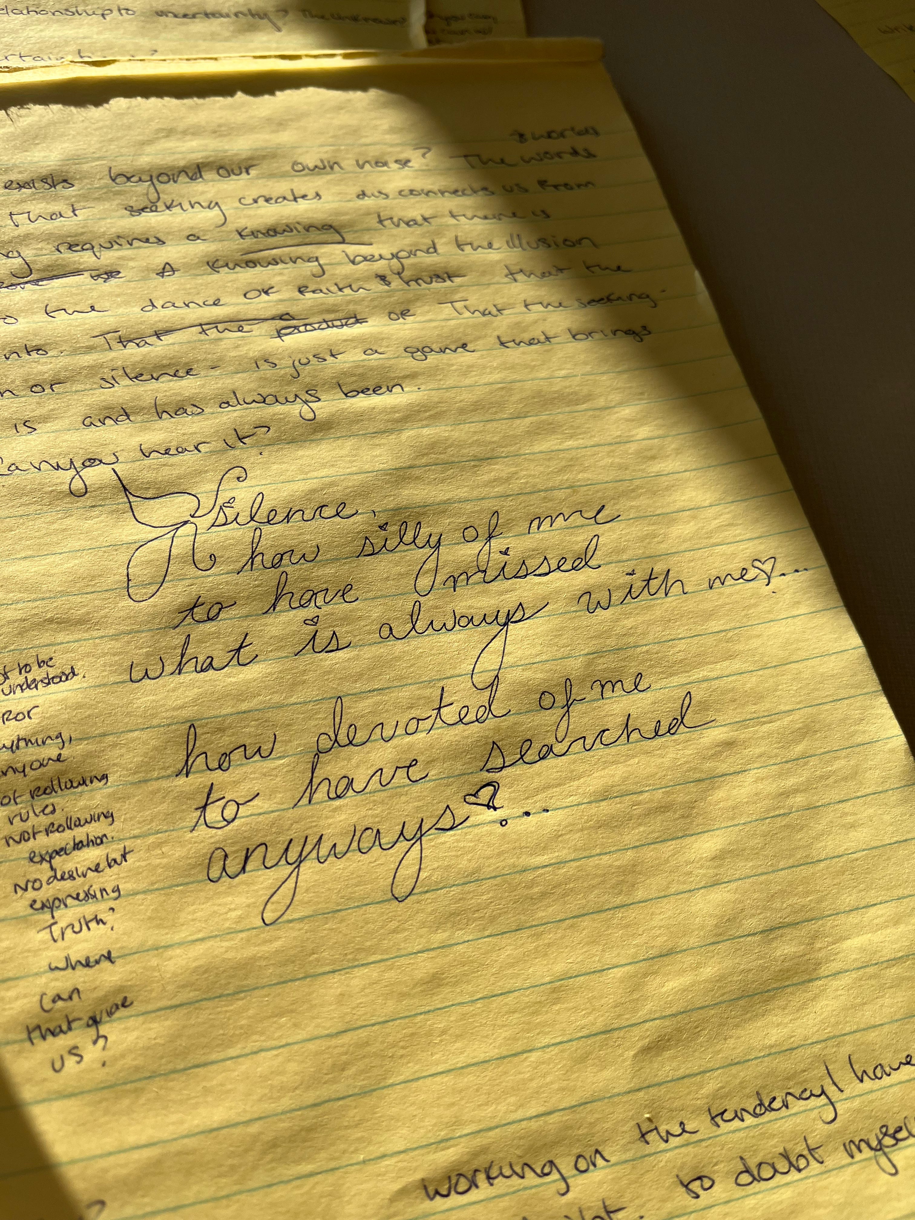 “Silence is the capacity to hear what is within and beyond sound. What is within and beyond what’s spoken. An effortless hearing; a doorway to true listening.” - Sydney Searcwell-Simpson