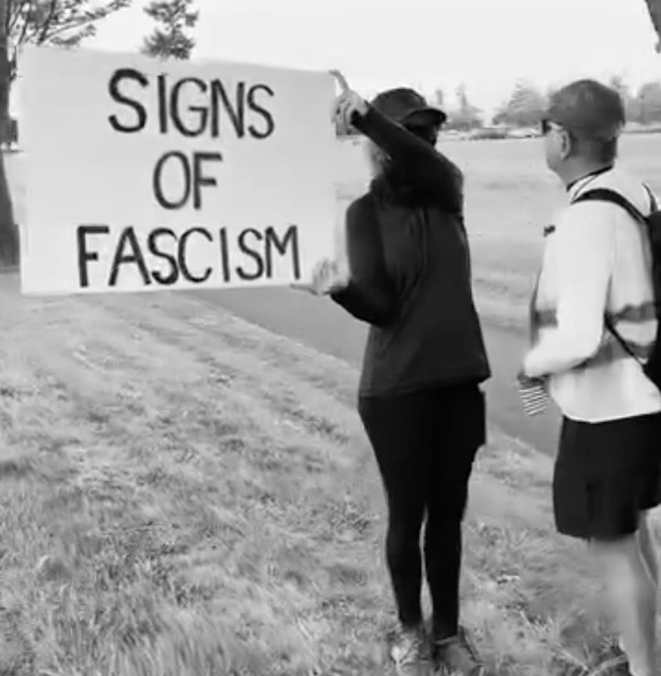 Some things are easier to spot when written on a sign than when woven into policy. Recently, a group of masked citizens stood on Washington Street in Sequim—between the Costco roundabout and Walmart—holding signs that spelled out what fascism looks like. They didn’t need speeches or shouting. Just words on cardboard.