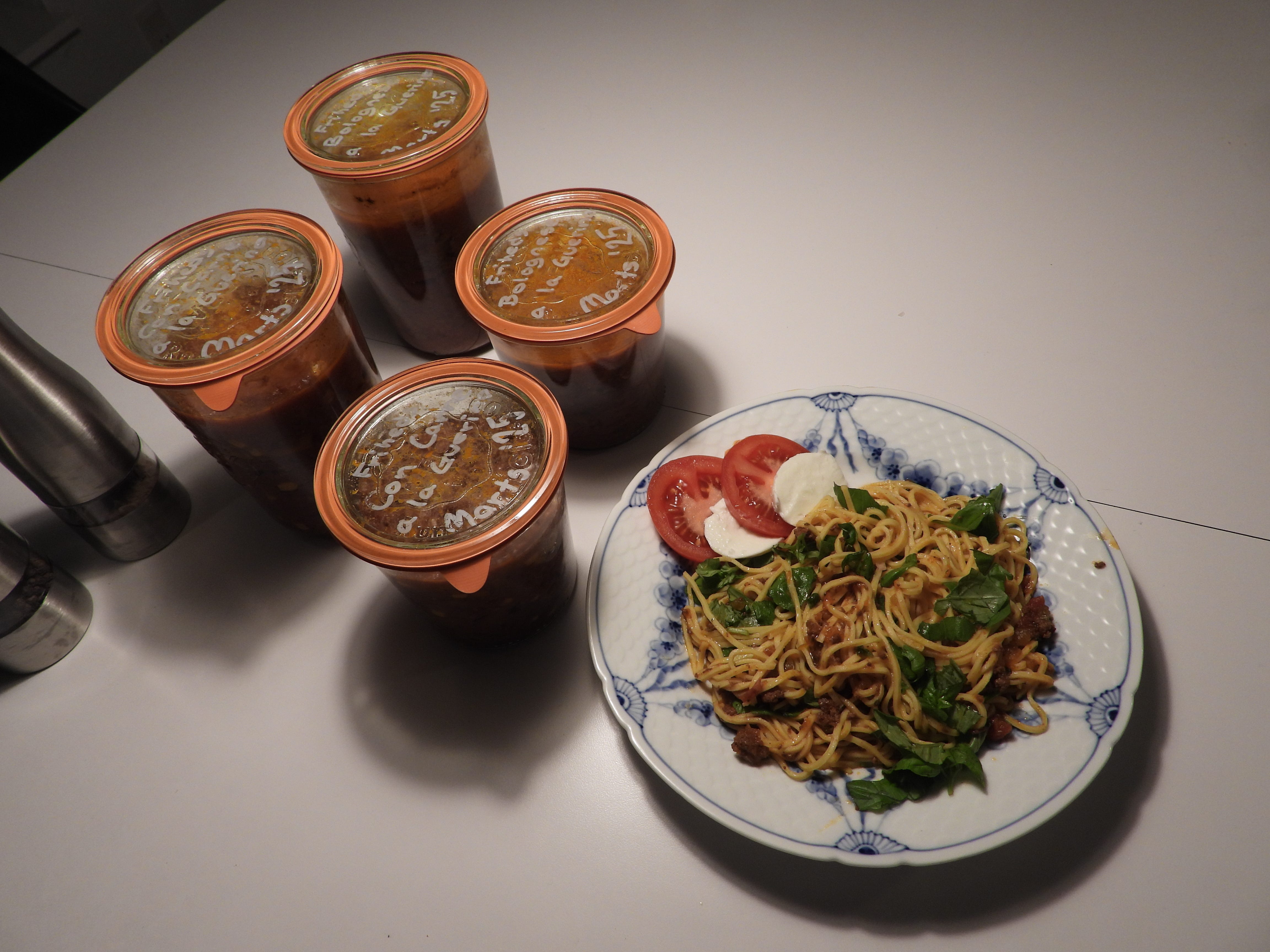 I video-serien kan du følge med i hvordan Nadja og jeg forbereder to retter, bolognese og chili con carne, som vi derefter trykhenkoger.