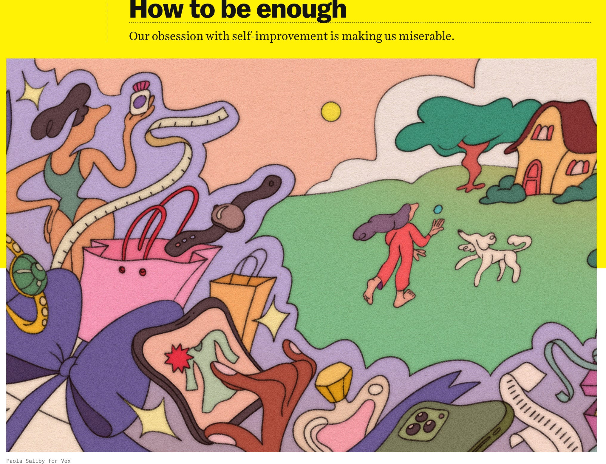 Article on Vox by Allie Volpe, is entitled “How to be enough: Our obsession with self-improvement is making us miserable.”