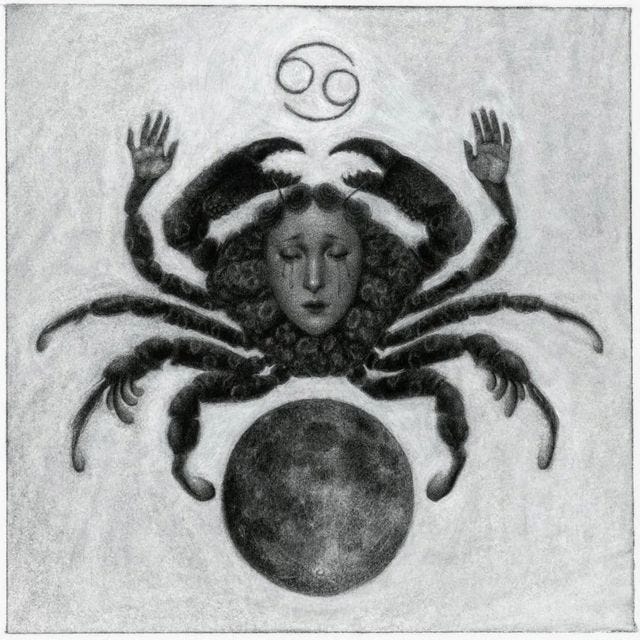 Hey loves! Sending this one out early, as a means of celebrating the Solstice / the Sun’s entrance into Cancer. Next week, the Sun + Moon will come together, conjunct our beloved Jupiter, all in the Cancerian part of the sky. New Moon Cazimi magick! A formal introduction to this watery realm, and all the depth it will bring over the coming year~