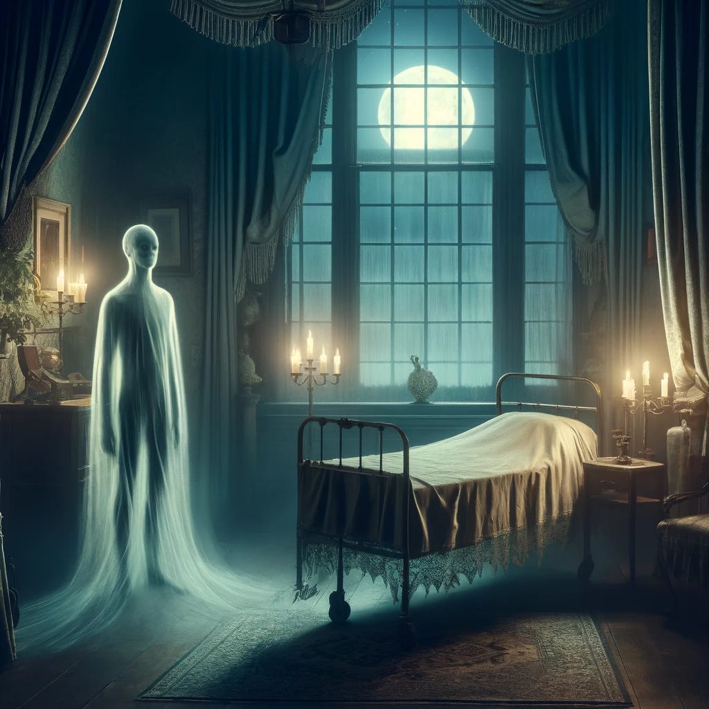 “Of course, I need not tell you that this was what you will call an hallucination and I call an apparition. That room had only two doors, of which one was locked; the other led into a bedroom, from which there was no exit. My feeling on realizing this is not an important part of the incident.