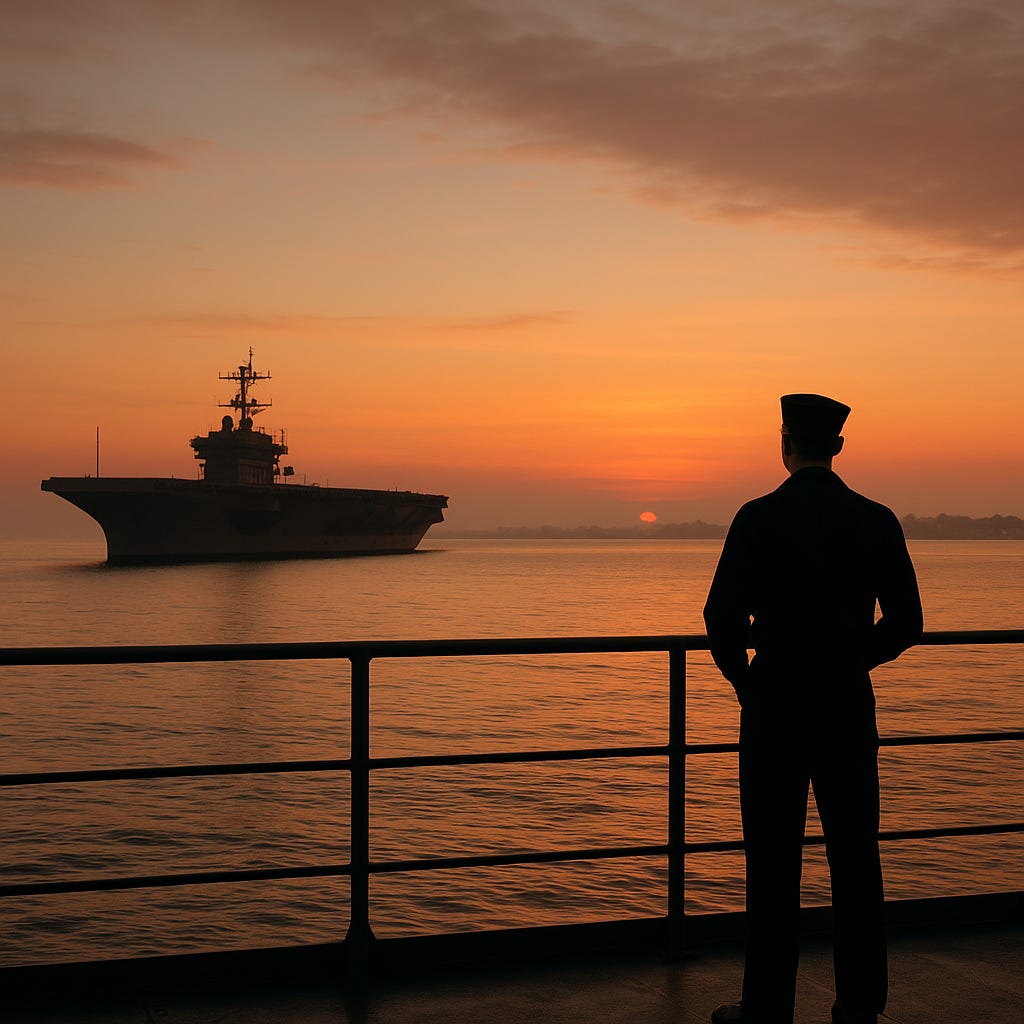 The Hopeful Voice: He was tired, yes. But not broken. He'd done his part—six months of catapult launches, mine watches, midnights in full gear for drills that always felt a little too real. One hundred and twelve days without setting foot on solid ground. He didn't need a parade. Just a cab and a bed and maybe a beer that hadn't been stored in a ship's hold. He'd earned that much, at least. And there was something dignified about walking off alone, handling his own homecoming in his own way.