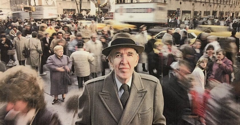 * His intellectual practice (like that of so many of our Lost Prophets!) was intense observation, whether in his interviews of corporate executives or in his way of learning about cities by walking the streets and watching the interactions in public spaces. The brilliance of his “amateur sociology.”