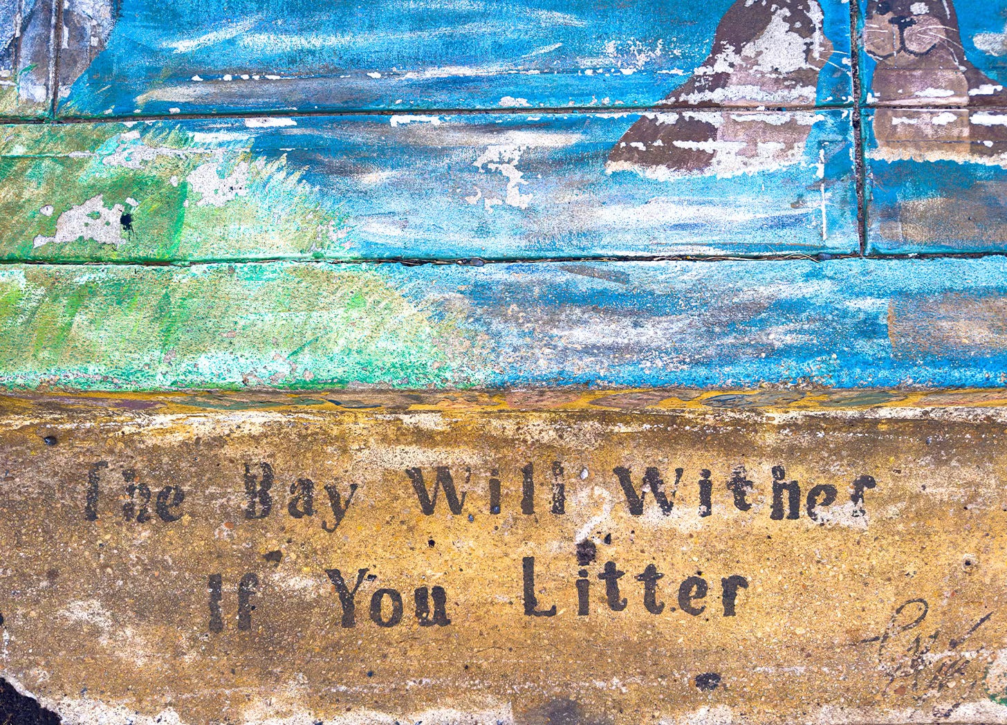 “The Bay Will Wither If You Litter”—Inscription on top of a storm drain, Chesapeake Bay, Maryland