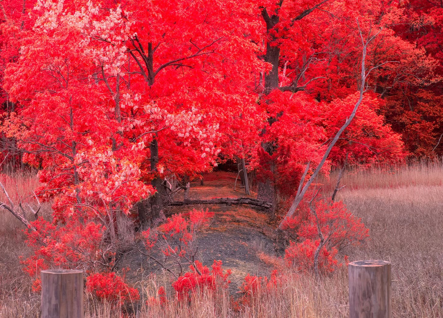 “The trees, which were far apart where I entered, giving free passage to the level rays of the sun, closed rapidly as I advanced, so that ere long their crowded stems barred the sunlight out, forming as it were a thick grating between me and the East. I seemed to be advancing towards a second midnight. In the midst of the intervening twilight, however, before I entered what appeared to be the darkest portion of the forest, I saw a country maiden coming towards me from its very depths. She did not seem to observe me, for she was apparently intent upon a bunch of wild flowers which she carried in her hand. I could hardly see her face; for, though she came direct towards me, she never looked up. But when we met, instead of passing, she turned and walked alongside of me for a few yards, still keeping her face downwards, and busied with her flowers. She spoke rapidly, however, all the time, in a low tone, as if talking to herself, but evidently addressing the purport of her words to me. She seemed afraid of being observed by some lurking foe. “Trust the Oak,” said she; “trust the Oak, and the Elm, and the great Beech. Take care of the Birch, for though she is honest, she is too young not to be changeable. But shun the Ash and the Alder; for the Ash is an ogre, you will know him by his thick fingers; and the Alder will smother you with her web of hair, if you let her near you at night.” All this was uttered without pause or alteration of tone. Then she turned suddenly and left me, walking still with the same unchanging gait.”