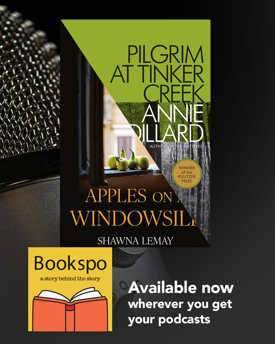 Another week, another BOOKSPO pairing. I’m so excited to bring you my conversation with Shawna Lemay all about how a chance encounter with Annie Dillard’s PILGRIM AT TINKER CREEK at an Edmonton bookshop in the 1990s created a path that’s led all the way to here and Lemay’s latest book, the essay collection APPLES ON THE WINDOWSILL.