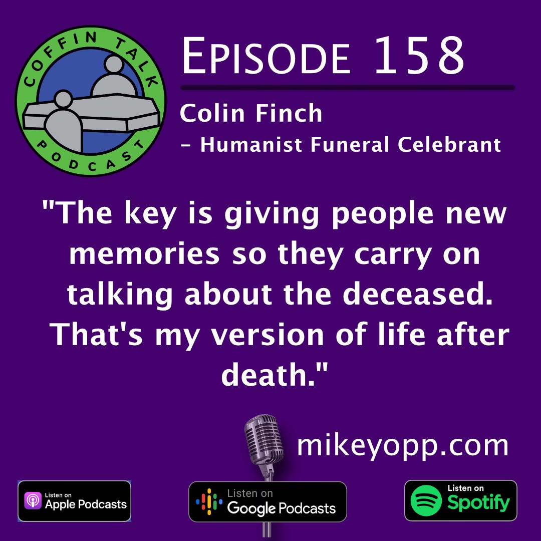 Colin Finch is a Humanist (non-religious) Funeral Celebrant. He has been doing this for 4 years, carrying out 2-3 services per month. He finds Celebrant work incredibly rewarding from an emotional perspective, but the downside is being exposed to grief on a regular basis, so he maintains self-awareness to protect his mental health. His unique approach to life and death are complemented by his sense of humor and wit.