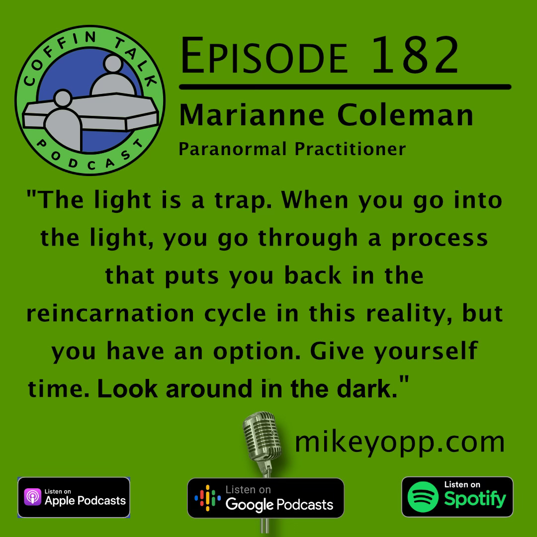 Marianne Coleman is an artist of many mediums. Her sculptures have found homes internationally and she is also a published illustrator who authors children's stories. She is a retired nurse after working in public and private hospitals throughout New Zealand, specializing in Cardio-Thoracic and Vascular surgery. Spiritually, she has always had a fascination for all things that go bump in the night or haunt your dreams. This started from a very young age when she had her first experiences with Star People, which are ongoing to this day. She is not shy about speaking out about her encounters and other experiences on her hit podcast, Walking the Shadowlands.