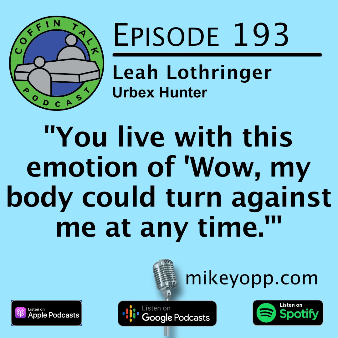 Leah Lothringer is a 40-year-old Australian living in Washington DC and working in IT strategy. She was on a business trip in the United States with no family or connections when COVID-19 broke out in 2020 and was legally forbidden from returning to Australia for more than a year! She ended up meeting her significant other and remained here, only to receive a diagnosis for a rare aggressive cancer that was cured in 2023. She’s also connected to death through her life-long hobby of identifying, visiting and photographing abandoned buildings all over the world (the older, more distressed, and haunted, the better). Oh, and her grandparents were Holocaust survivors! Check out her photography on Instagram.