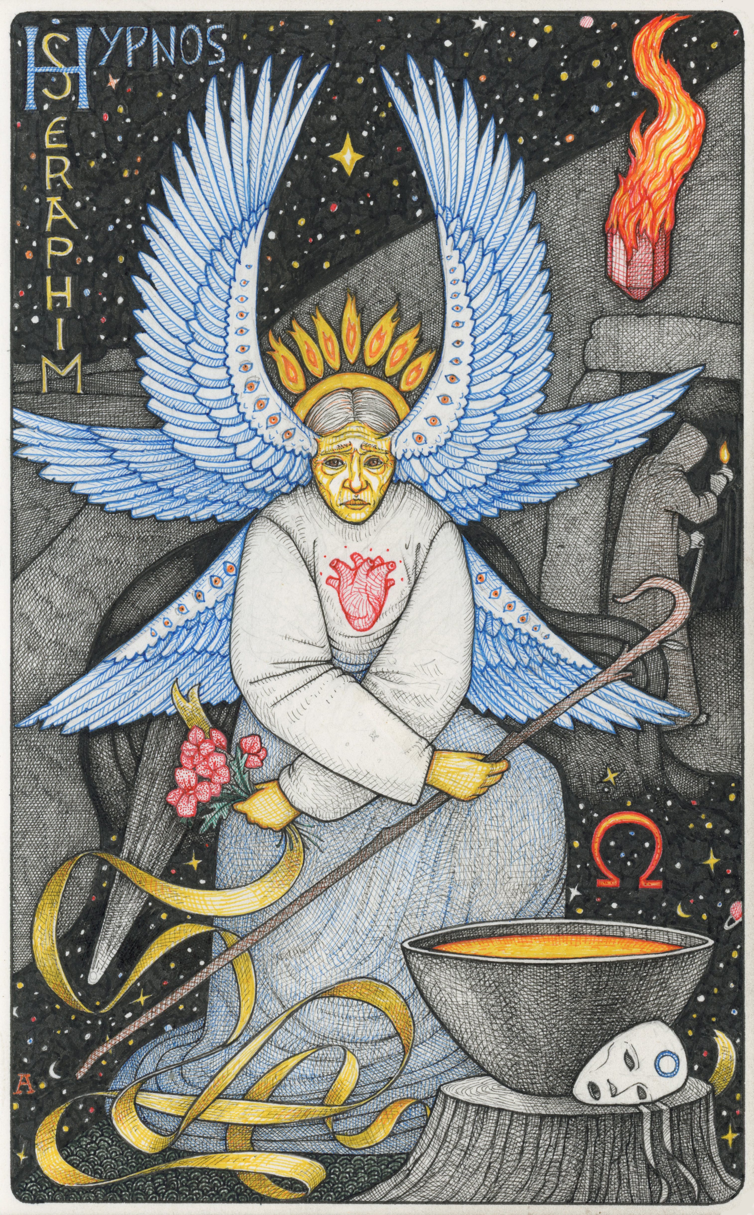 Here is the stunning drawing of Hypnos Seraphim, which is the (current) cover image for The Diary of a Tree Sanding on Its Head.