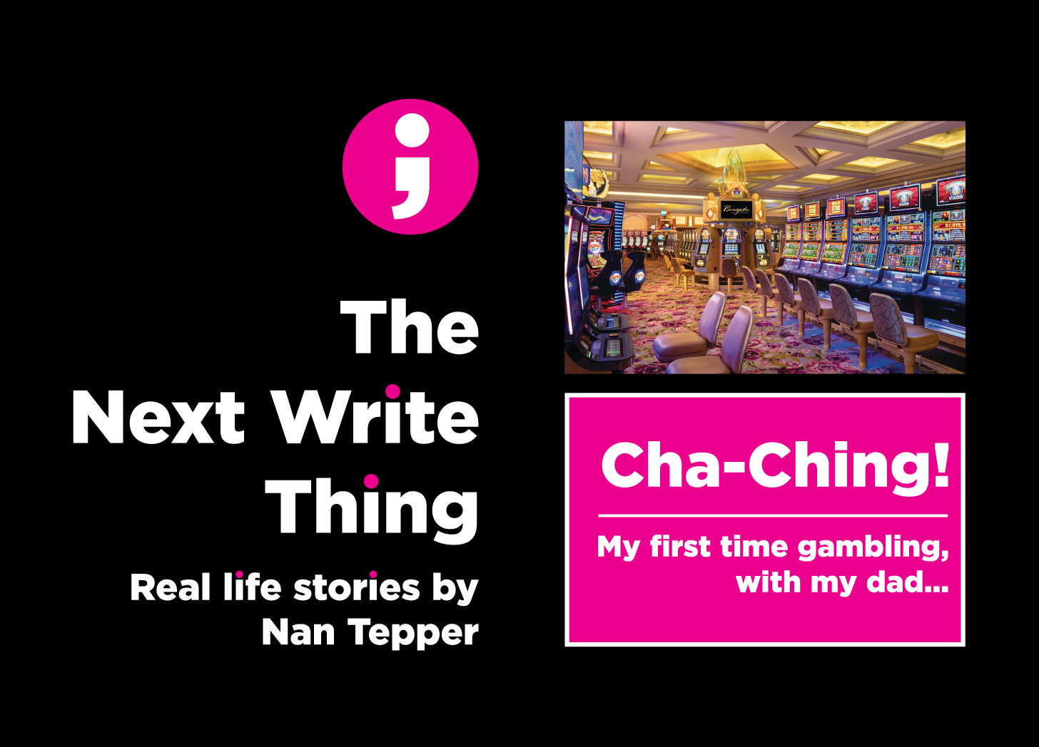 Years before, my dad’s boyfriend took him to a casino for the first time, and dad adored it. No blackjack or craps for him. He loved the slots, and only played the nickelmachines. He could be a very prudent man. I’d never been to a casino. Gambling scared me. I was wary of becoming addicted––because my tendency is to go all in when I’m excited about something new. And I rarely had cash to burn. Up until that point, I’d avoided the temptation. My brother, at one time in his life, loved to gamble and was intrigued with my idea, so we set a date.