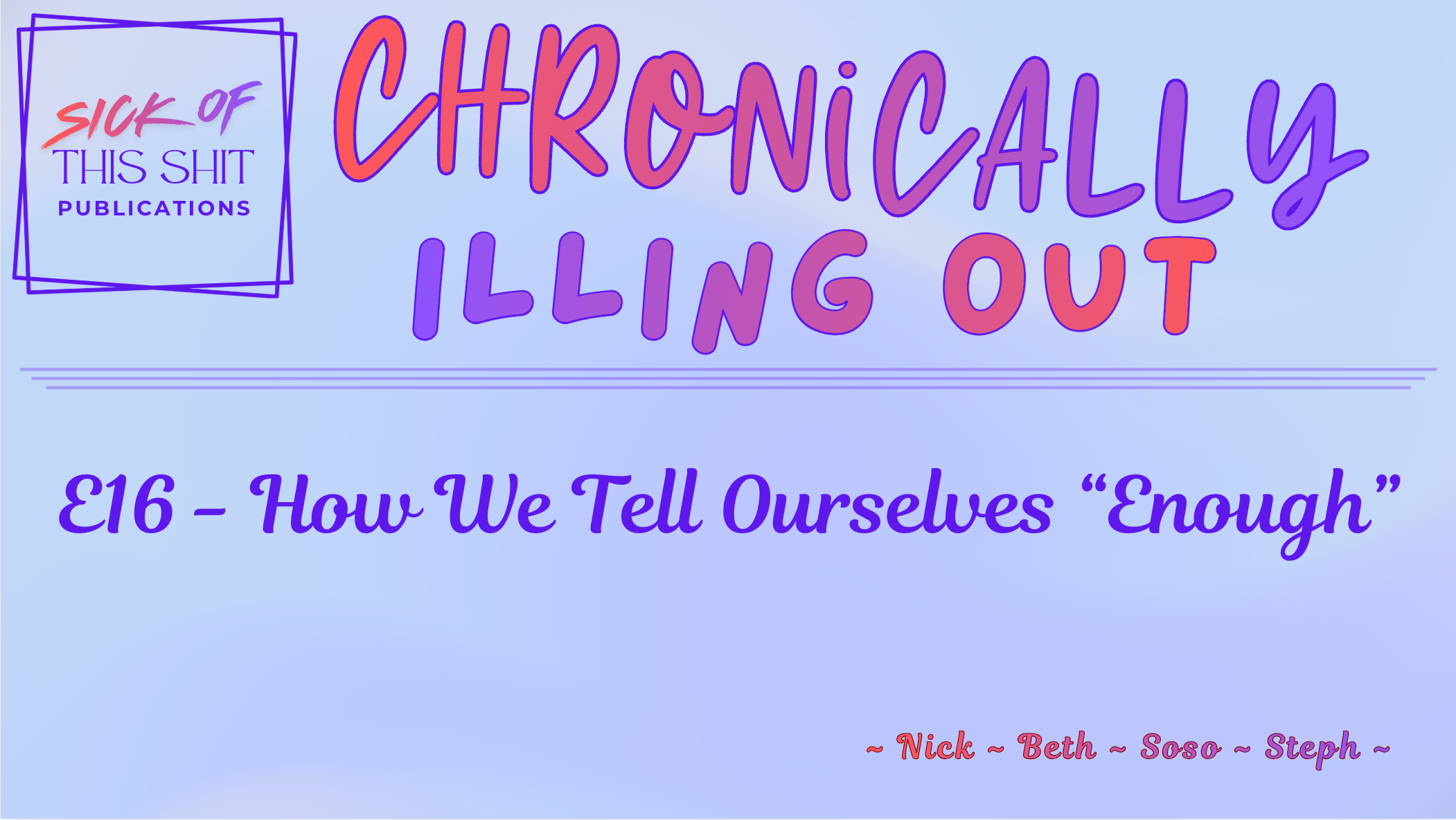 For support, contact us at: info@sickofthisshitpublications.com