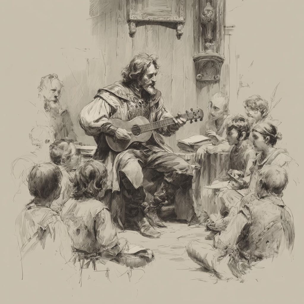 Let’s back way up. What are we fiction writers doing here? (Okay, you nonfictionites can come along too.) Why are we here? Are we not cut from the same cloth as jesters in the king’s court, as storytellers standing around a fire, as bards traveling to far-off lands to share their latest tale? You’re damn right we are. We are entertainers!