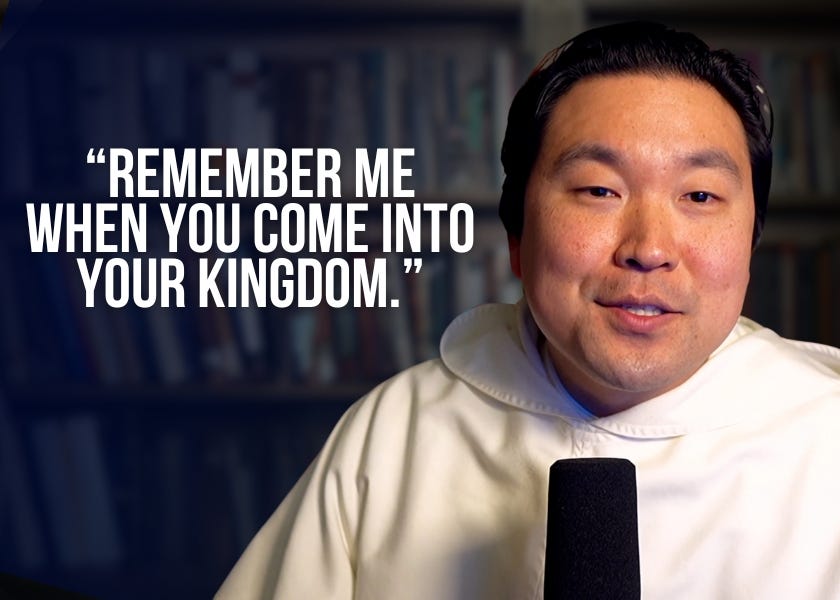 Fr. Cajetan Cuddy, O.P. reflects on Luke 23 and the three attitudes toward salvation revealed at the crucifixion. The rulers and soldiers claim Jesus must save Himself. The first criminal admits his need for salvation but still thinks Jesus must save Himself first. Only the good thief understands who Jesus is, turning to Him simply and humbly: “Jesus, remember me when you come into your kingdom.”Jesus has no need of salvation. He alone is Savior, and to be remembered by Him is to be united to Him—caught up into His loving knowledge and mercy. The one who entrusts himself to Christ receives what Christ alone can give: “Today you will be with me in paradise.”