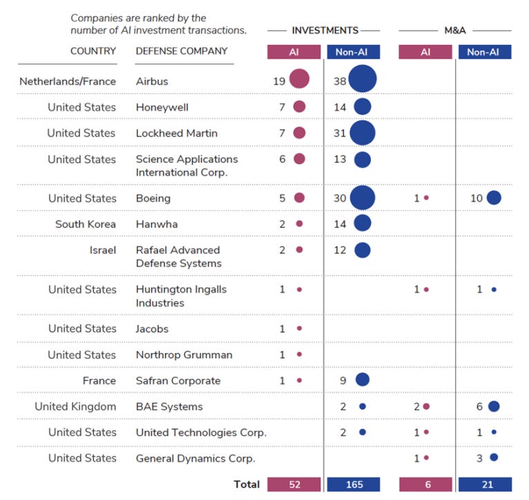 * Investing in and acquiring private AI companies, on the other hand, can be an efficient way for defense companies to build their expertise, talent base, and commercial products. This can also be a type of “bridge” between the private sector and the government.