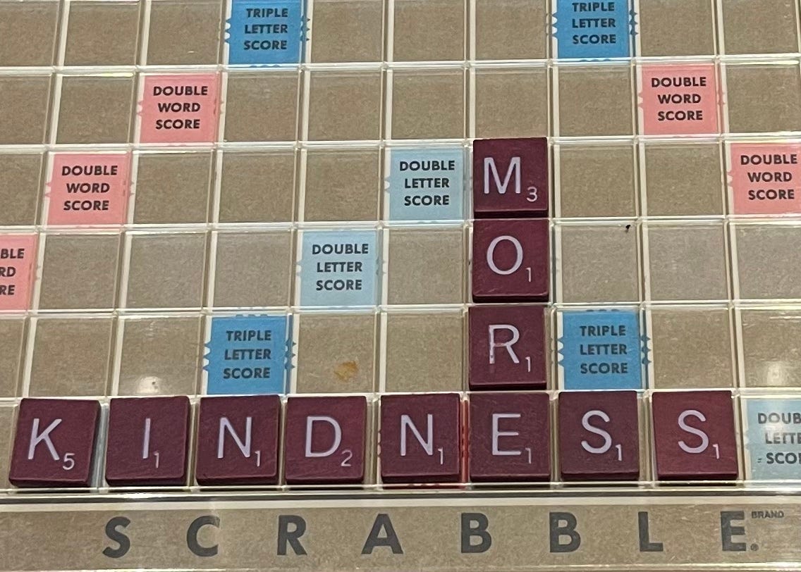 And for those of you keeping score, KINDNESS on that location of the Scrabble Board would have been a 54 point word. I took that photo. Other photo credits: Bill Walton by Alan Berezovsky from the LA Times; Dalai Lama from His Holiness’s Facebook page; Close Encounters from Indiana University; and Ray Kinsella from FenwayPark100.