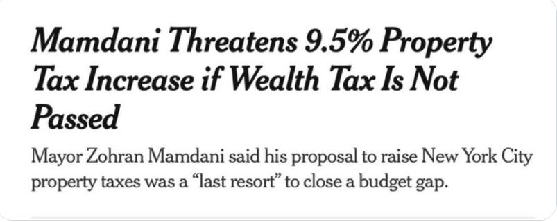 Now he threatens dhimmi New Yorkers, as if it will be their fault if his policies aren’t carried out, announcing he will raise taxes on all New Yorkers: