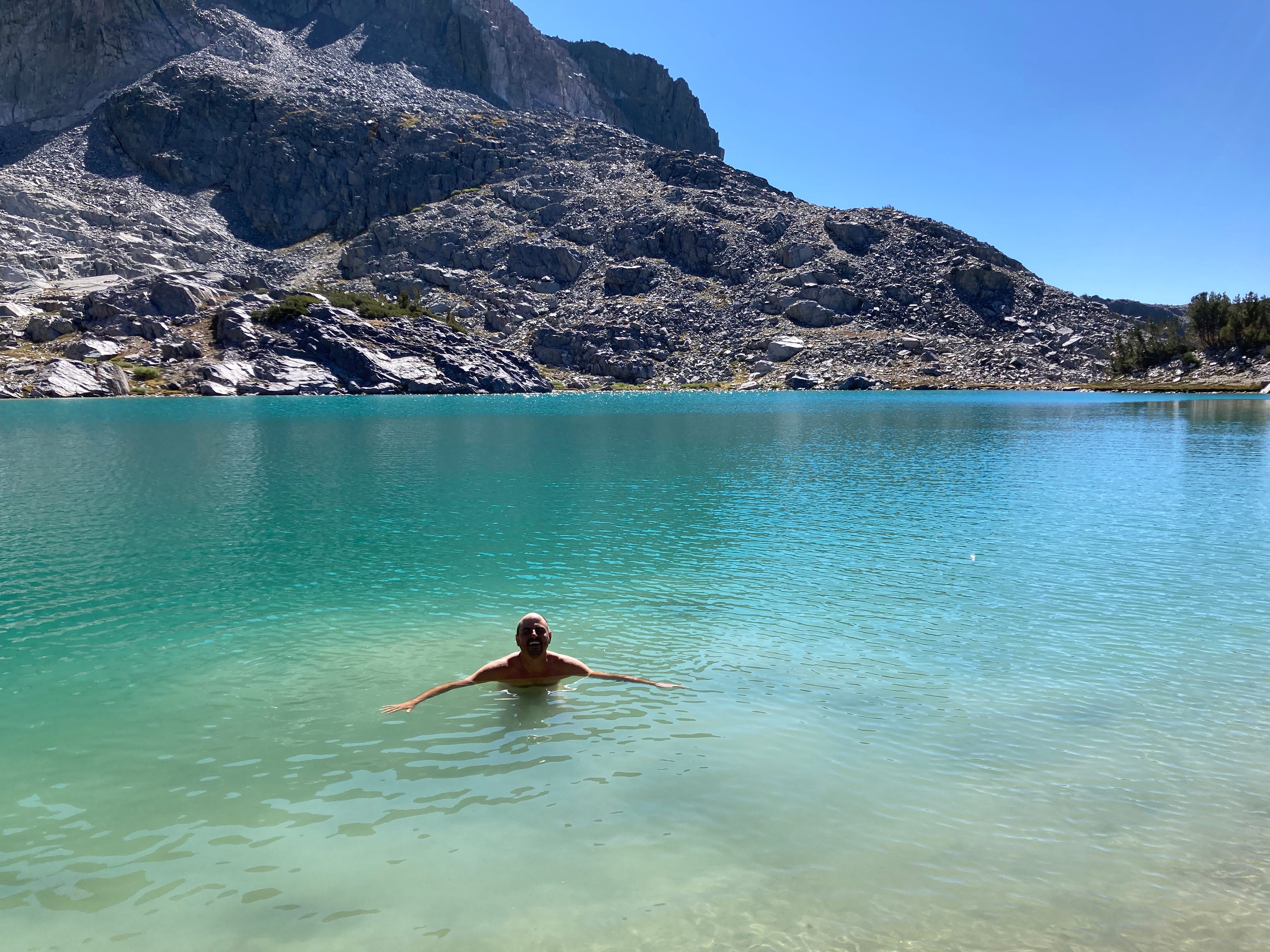 Anthony and I doing the goat work up on the Mammoth Crest, looking very alive after swimming in the 11,000’ mountain lake that’s just over his shoulder.