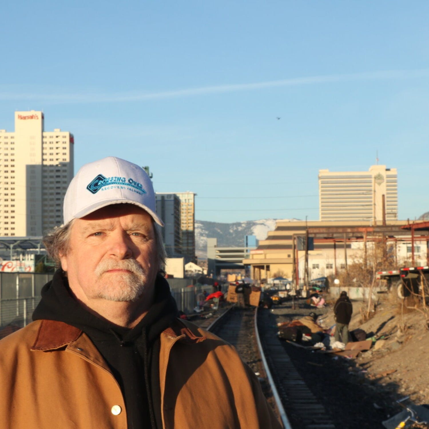 “We need to find someplace these people can set up camp and be safe." Art Gillespie, a recovery success story himself, is now helping those who are being displaced from one encampment spot to another in Reno, Nevada.
