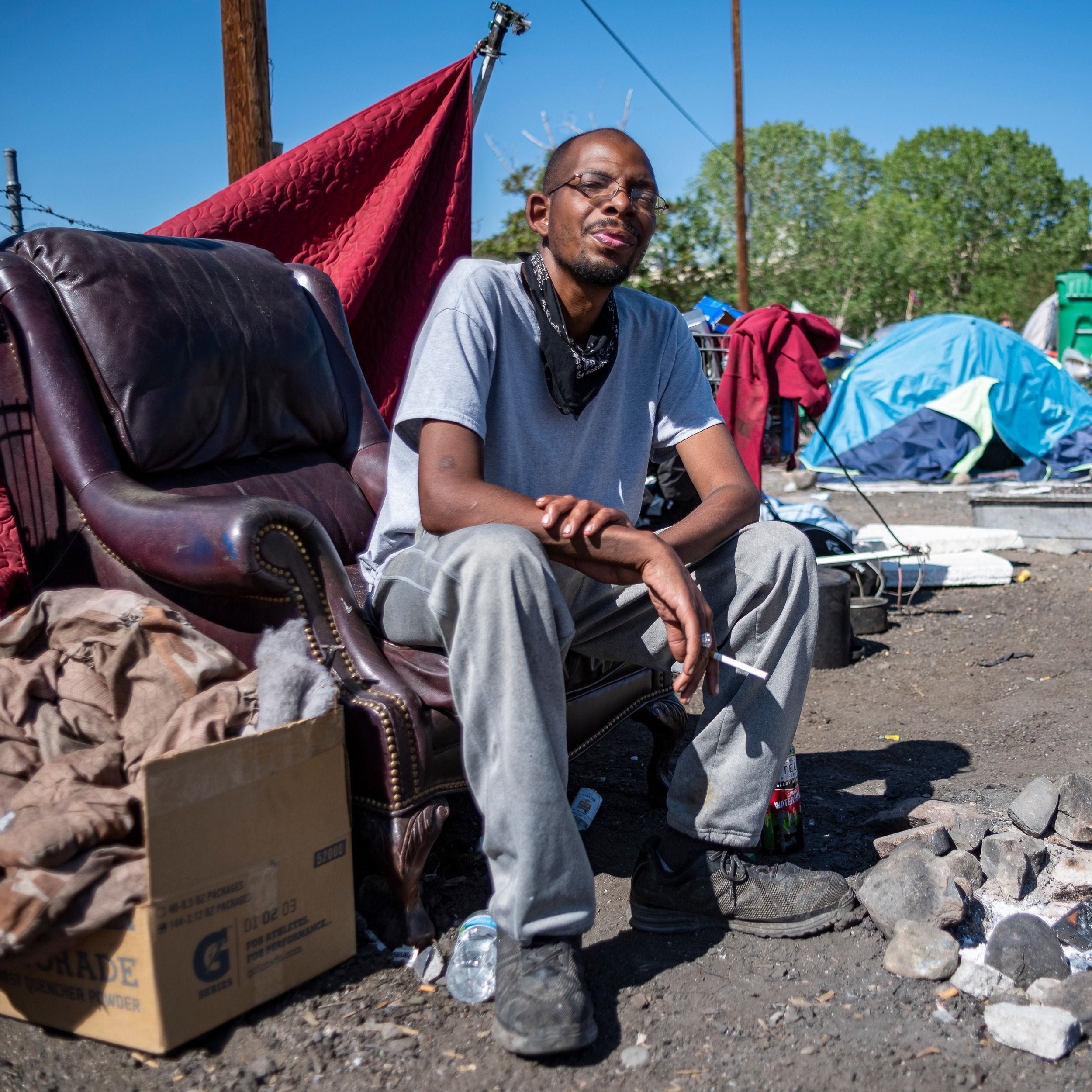 When we interviewed him, Carl, an Illinois native, had been living in the tent city in Reno for about a month. “We're all sick, we're all struggling. You know, we're all struggling. I mean, you do get some bad seeds up in here, but you know what, we're all pretty much in the same boat.” As notices were handed out up and down railroad tracks in Reno, Carl sat down in an outdoor couch to have a cigarette and share his story with Richard Bednarski.