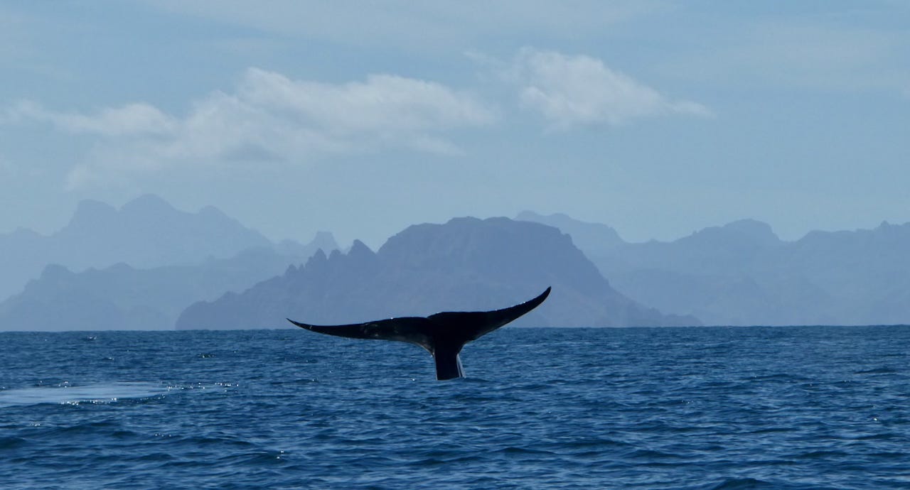 Recently, I had the good fortune to time travel back to when giants ruled the Earth. Well, sort of. I was down in Loreto, Mexico, and got to see the largest animals that have ever lived: blue whales. (By largest, this is in reference to heft and not to length, though there is some dispute about some fossilized beasts that may have outweighed the blue.) Like many northerners, blue whales take advantage of the calm, relatively warm, high diversity, food-abundant water to spend a couple months down in the Sea of Cortez.
