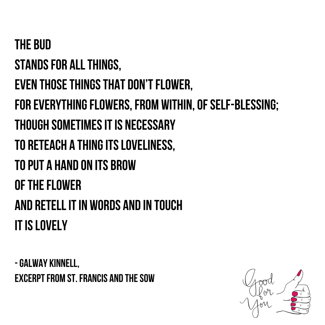 But a self-blessing, the poet knows, can be just as lovely, too.