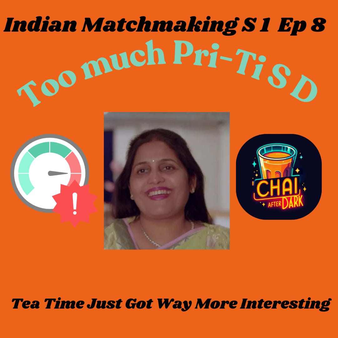 We continue our rewatch of Indian Matchmaking with S1:E8, titled Adjustment and Compromise. We complete the season and we just have so much Pre-Ti-SD. We definitely didn't get what we want from Netflix this episode, and they came with some sus edits. Chai After Dark is available everywhere you listen to podcasts!