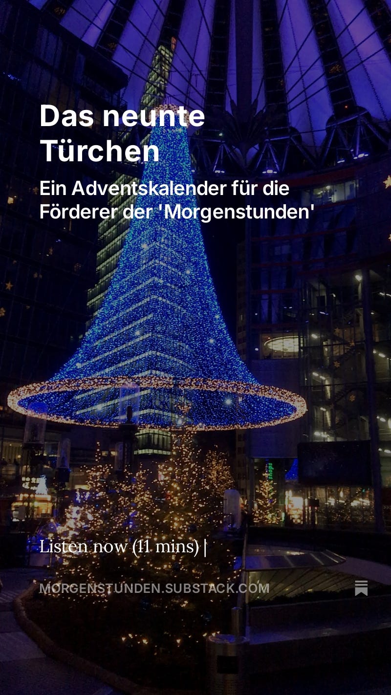 Jede ‘Morgenstunde’ ist 14 Tage kostenlos abrufbar. Mit einem Abonnement ab 6,67 € pro Monat (jederzeit kündbar) erhalten Sie Zugang zu älteren Beiträgen — und leisten einen kostbaren Beitrag zur Finanzierung meiner Arbeit. Vielen Dank!