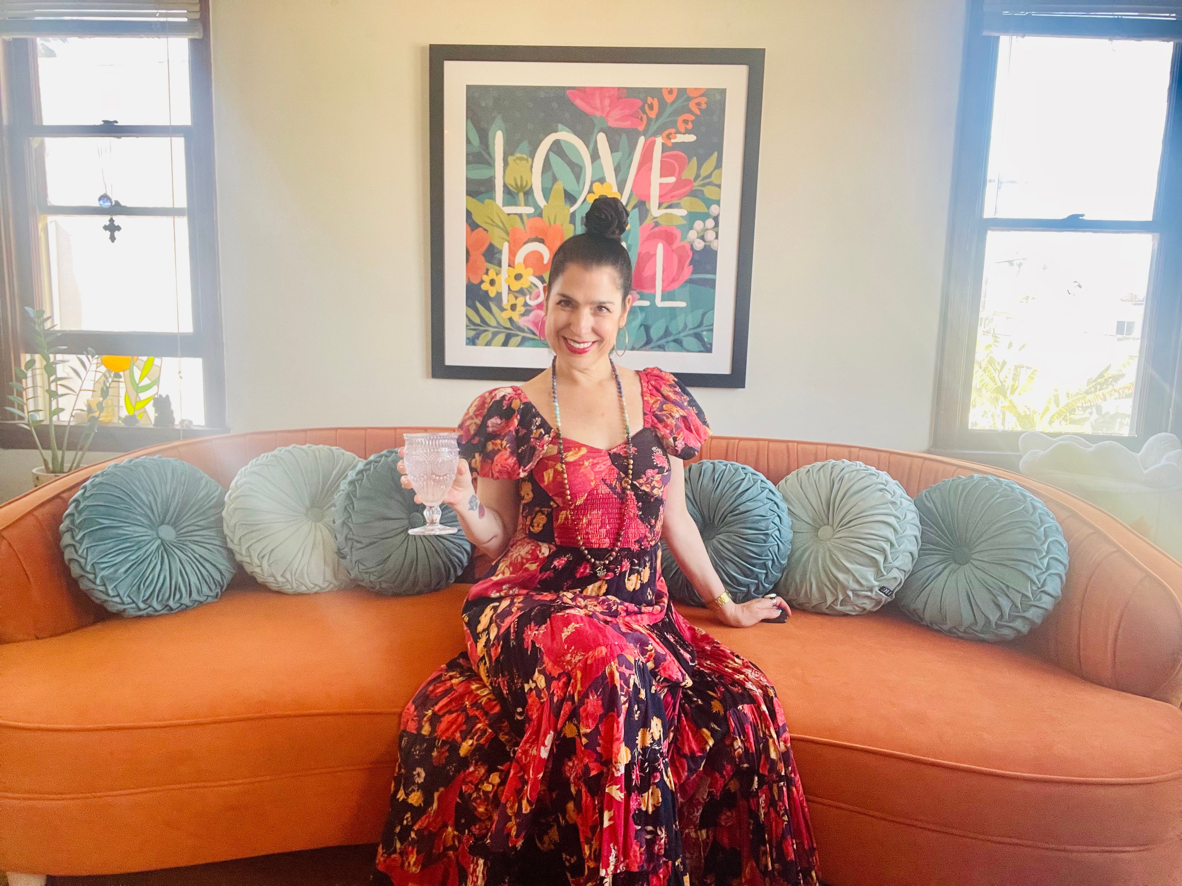 The biggest upgrades included my bed and bedroom furniture, a Sofa, rug, coffee table sideboard/buffet, Art, desk chair and office rug etc. The bed alone was a huge shift! It is the most important and impactful piece of furniture you own! It represents and holds the energy of your health and love life. Two areas of life where a reset was needed! My new vibrant orange velvet art deco inspired Sofa and floral Art are the set and setting for my Podcast! This area of my home happen to reside in my Love & Fame Gua! The new art contains the mantra “Love Is All”! It’s the message you are greeted with when you enter my space! I wake up every day now thinking OMG, this is paradise!