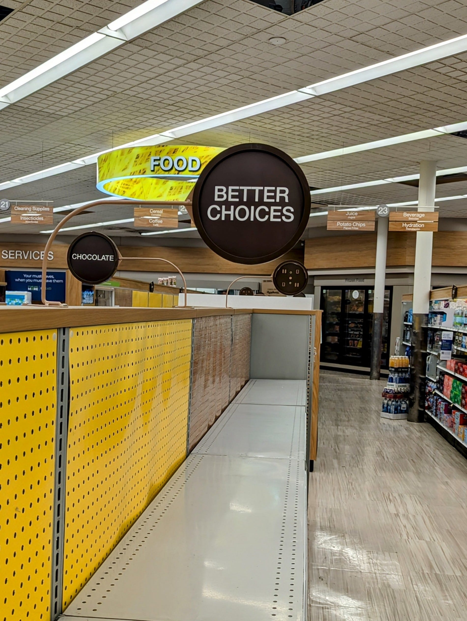 Lily, herself, did have a question pertaining to the “It’s All Greek to Me” essay. Hers pertained to what I wrote about our local Rite Aid. I described it as “our oddly beloved, thoroughly bleak Voyage of the Damned Rite Aid” and I posed a question about it having very little product on its shelves. Knowing that I have started taking pictures inside the store, Lily asked if either I would, or if she could, start an Instagram handle for the store itself, akin to two IG’s she particularly loves: