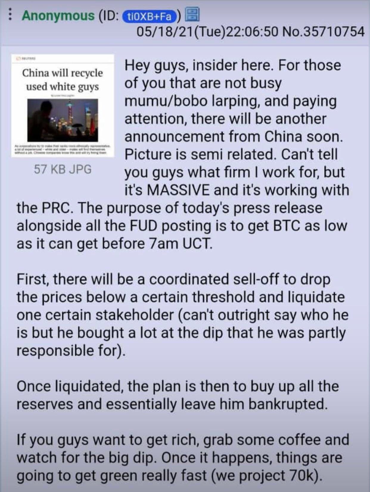 In my humble opinion, this Reuters article is one of the main drivers of the decline in the markets and put the cherry on top of the FUD cake. Like I’ve always said, do your own research on these topics. To me, the timing of this couldn’t be more spot on.