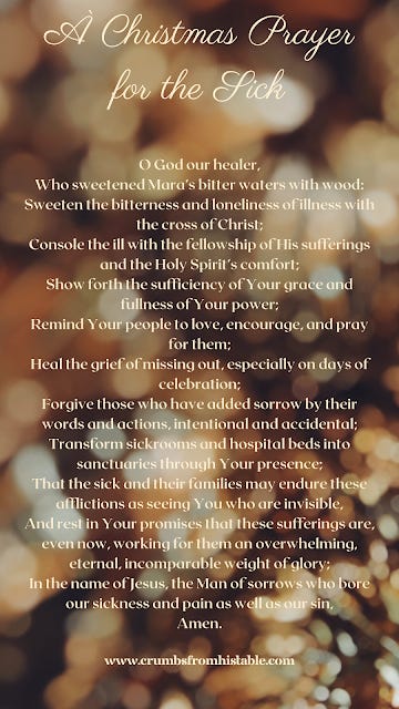 Sweeten the bitterness and loneliness of illness with the cross of Christ;