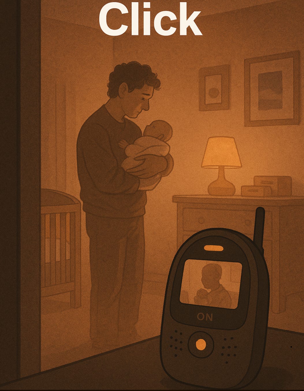 The baby monitor buzzed softly. Voices. Words fading in and out, but one part he heard clearly.