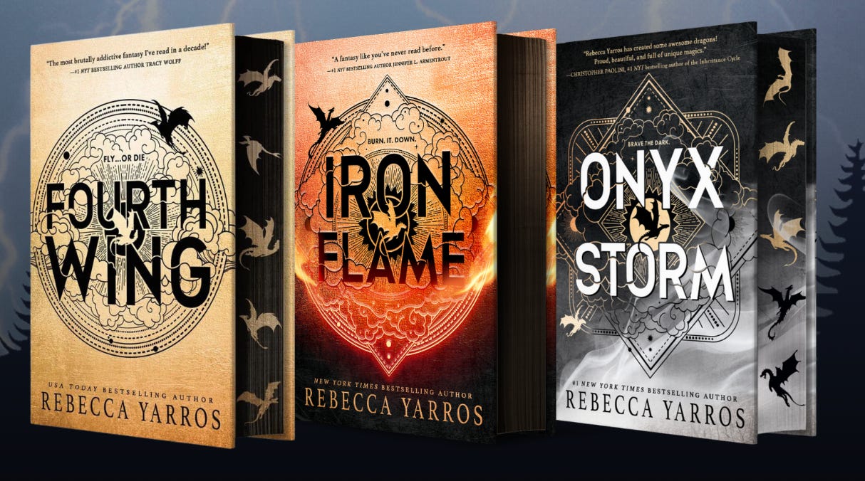 Well buckle up because on this week’s episode we chat about books but more importantly we divulge into Rebecca Yarros’ world of Fourth Wing & Iron Flame. Why this series has such a chokehold on us…