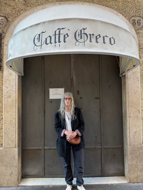 Below is the awning of the historic Caffe Greco. May it survive!! The book is Divided Soul, The Life of Gogol by Henri Troyat. Happy August to all.