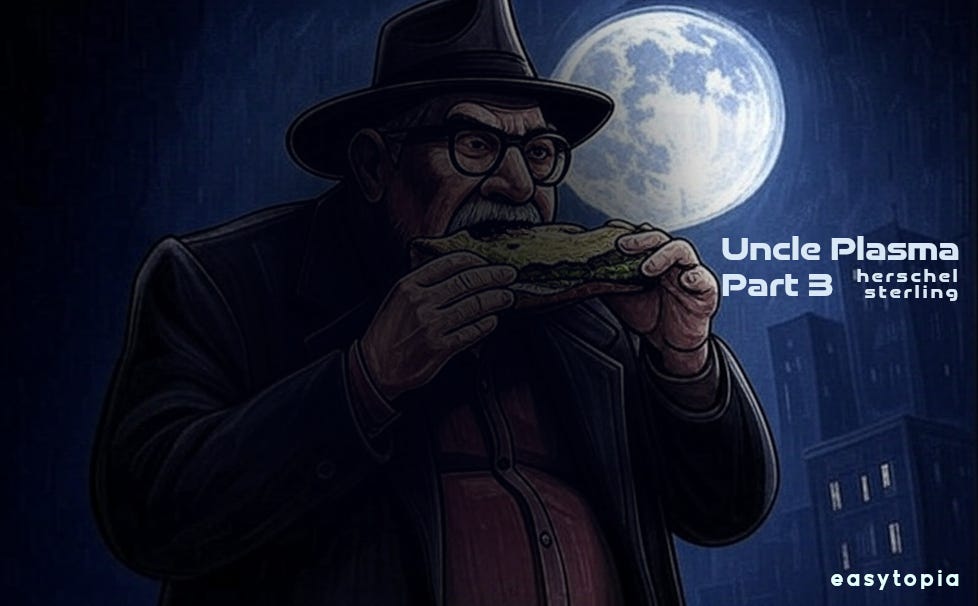 Sometimes these Flash Fiction stories become something I like to keep going. Last time, we left Uncle Plasma riding atop a truck where the two occupants are up to something. Here is the initial Uncle Plasma story. Here is Part 2. I want to encourage other creative writers to experiment with this Flash Fiction method.