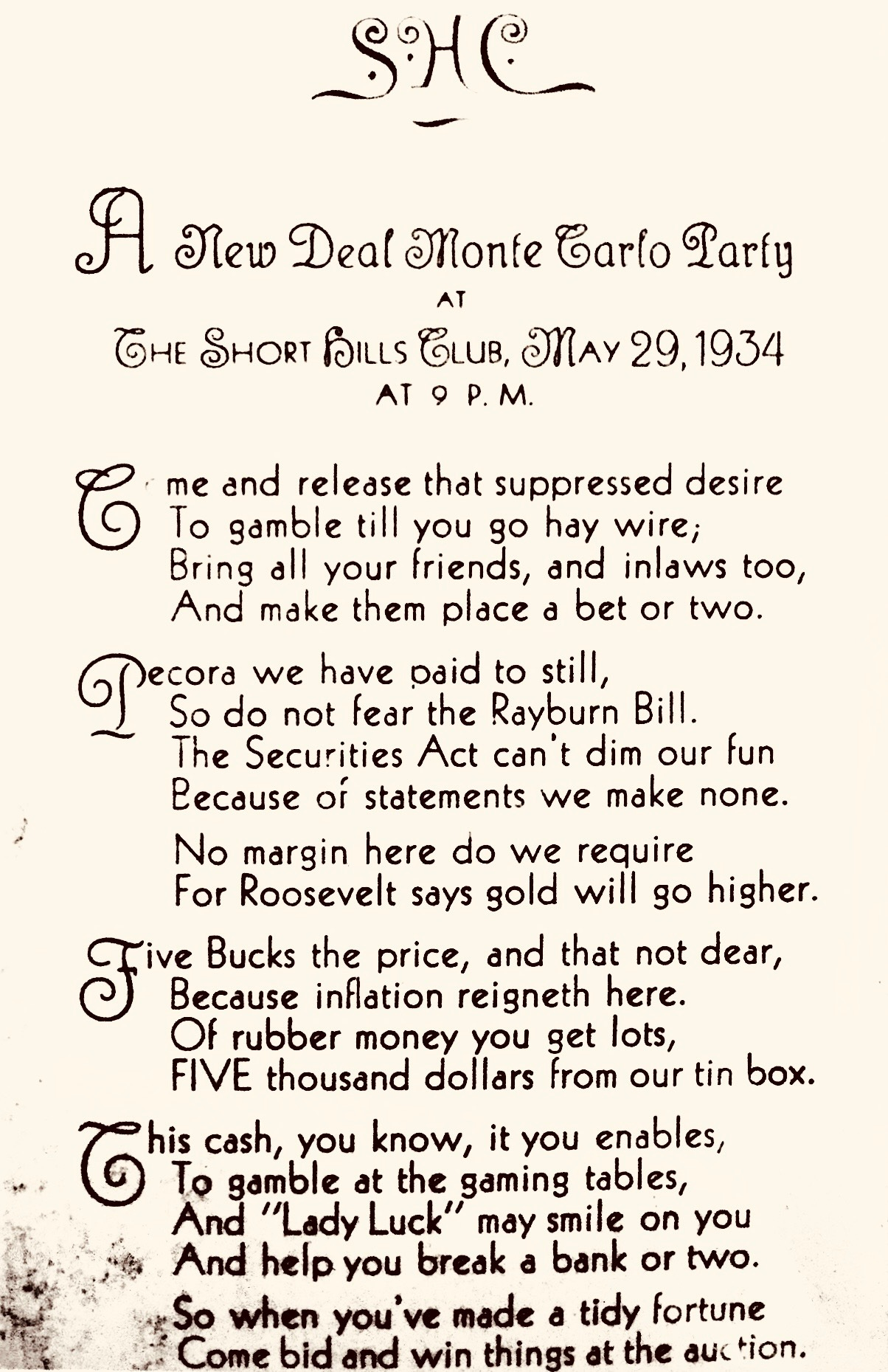 The Daily Spark. Episode 385. A New Deal Party ~ At the Club. "At 9 pm, May 29, 1934. Five bucks the price..."Composed, imaged & voiced by Colin Goedecke. Cello music by Fawn Bell.