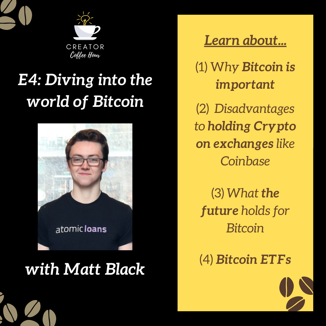 We talk more in-depth about the importance of Bitcoin, why you should be paying attention to Bitcoin and Crypto as a whole, the future of BTC as an asset, comparing the different ways of Bitcoin ownership and how to learn more about the Crypto environment.