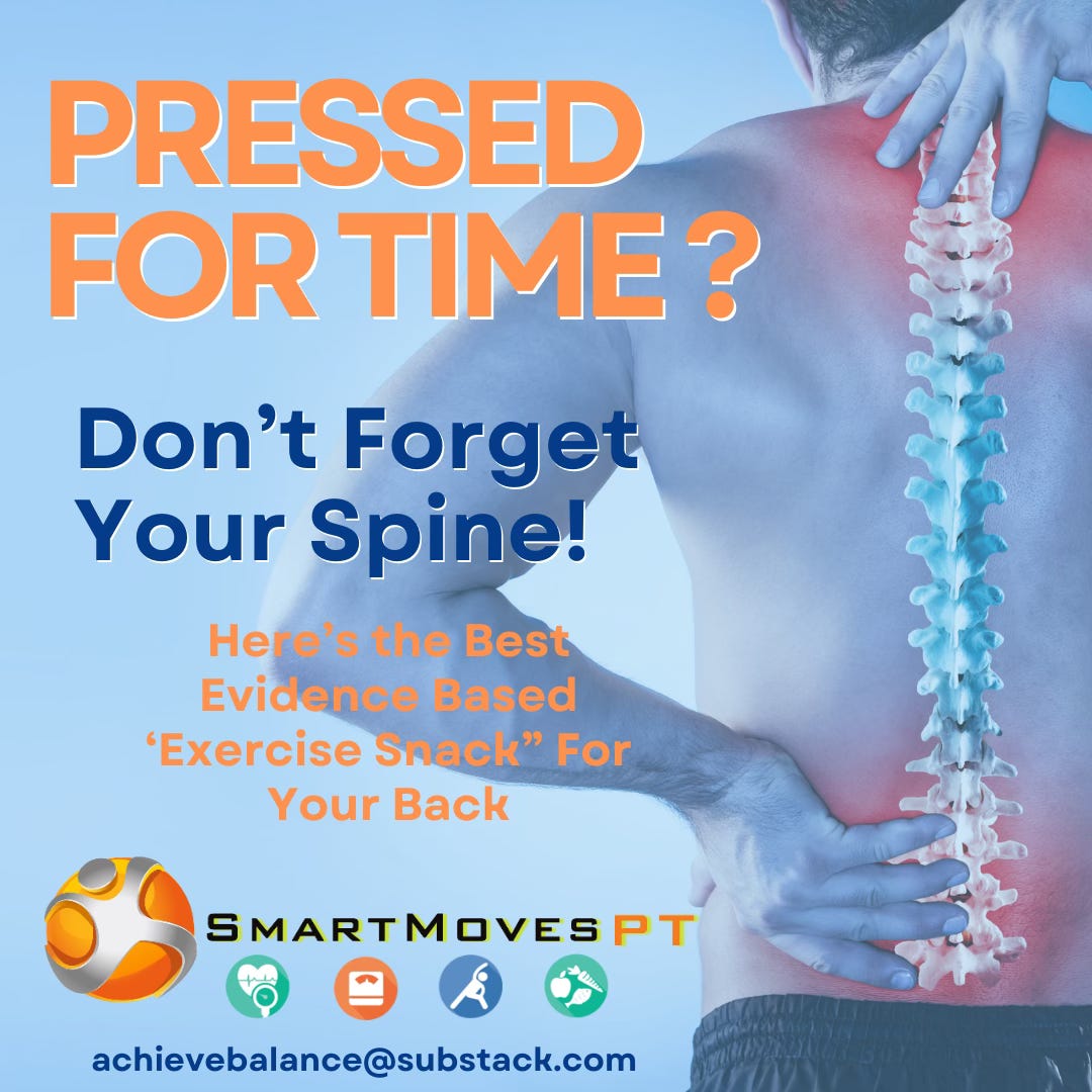 If they are going to cut corners on their routine, I advise them not to skip this top “Exercise Snack” in their program. (I use the term ‘exercise snack’ only because it seems to be the fitness buzzword these days- look it up!)