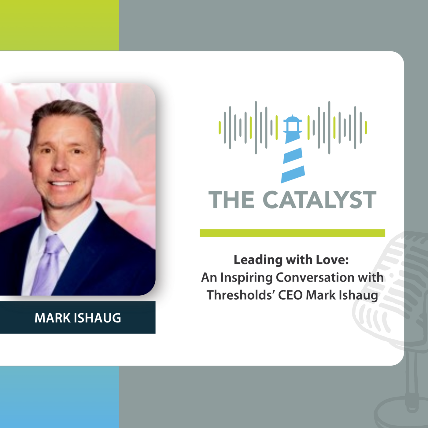 In this episode we’re joined by Mark Ishaug, President and CEO of Thresholds, providers of  healthcare, housing, and hope for thousands of persons with mental health and substance use conditions in Illinois each year. Mark shares his inspiring 40 year journey in nonprofit leadership. We discuss the importance of integrated care, as well as the stigma, funding and other challenges in delivering healthcare and housing. Mark then describes what he means by “leading with love,” how he “operationalizes” it, and its transformative impacts on colleagues and clients.