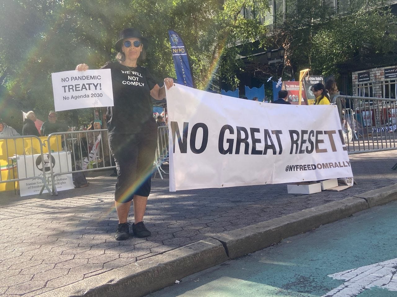 My False Flag Weekly News colleague Cat McGuire was at the United Nations headquarters in New York this week protesting against the Pandemic Treaty, Agenda 2030, and Smart Cities. Below is the protesters’ statement.