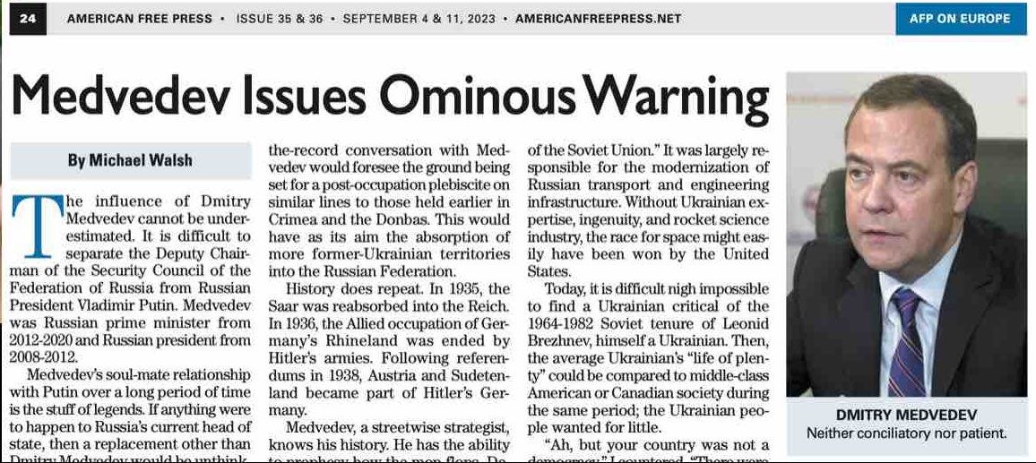 In his recent American Free Pressarticle Michael Walsh notes that Putin’s right-hand man, Dmit…