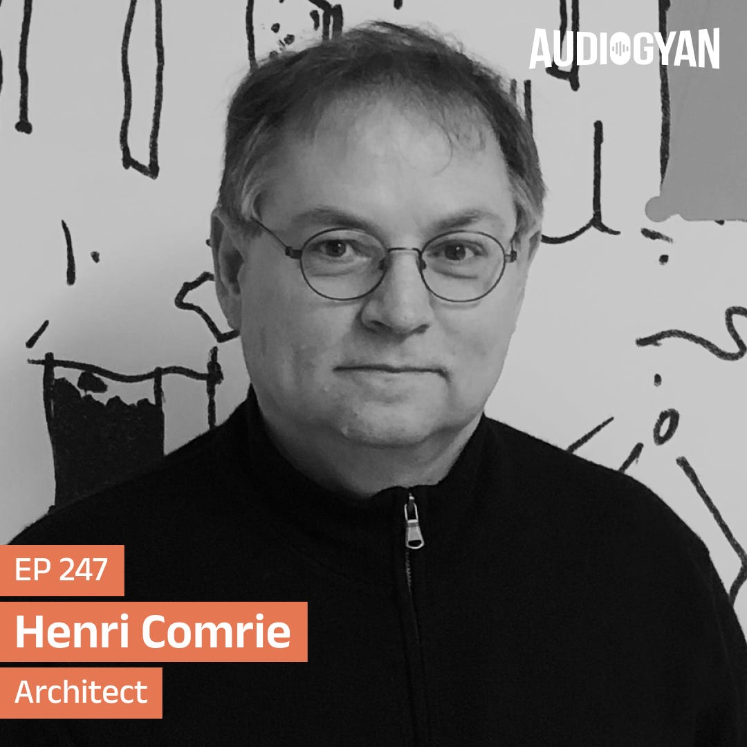 We have one of the Jury members with us on Audiogyan. The well-known, Cape Town based Architect and Urban Designer, Henri Comrie. Henri is a minimalist and reductivist architect and urban designer who enjoys working through complex problems to arrive at simple and logical solutions that hold wide appeal. He is the founding partner of URBA Architects & Urban Designers from Cape Town, South Africa. Henri has been practicing architecture for nearly 3 decades. He was the lead urban designer for the FIFA World Cup Stadium in Cape Town and several large mixed-use precincts, as well as the architect of several prominent educational and residential buildings across a range of scales. Today we’ll try to document some of his thoughts on Minimalist/reductivist architecture and a bit about, what is good architecture while he will evaluate entries at “The Drawing Board” competition.