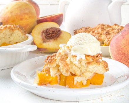 Audio. Sorry-not-sorry peach cobbler! Summer treat favorite